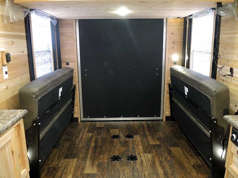 Ignite your ice fishing adventures with the 8′ x 24′ Ghost Rider Toy Hauler – a fiery fusion of comfort and daredevil spirit! This isn’t just a fish house; it’s a mobile lair, ready to blaze trails and haul your most prized toys, be it your motorcycle or fishing gear.