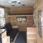 As the day’s catch turns into night’s feast, the 3-burner cook-top with oven, adorned with a glass door, becomes the heart of the ice house, surrounded by upper cabinets and new countertops that echo the resilience of the outdoors. Camo cushions and curtains stand as a nod to your hunter’s spirit, blending seamlessly with the environment you’ve ventured to conquer.