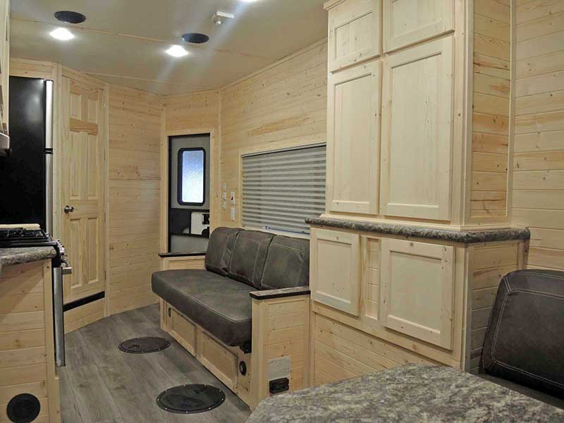Step inside to find a cozy sleeping area for five, a sanctuary where you can recharge after a day of conquests on the ice. With a layout that cleverly maximizes space, you’ll find ample room for relaxation, storage, and all your angling gear.
